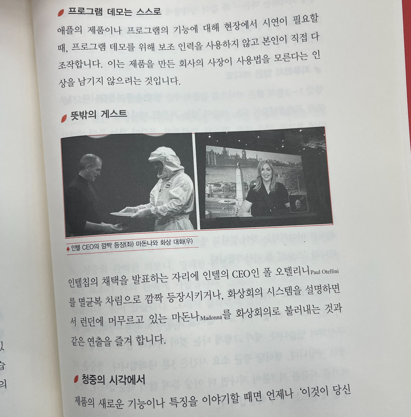 도서관에서 장학근무하면서 감명깊게 읽은 한 책을 소개하고자 한다. 책 이름은 '스티브잡스의 프레젠테이션'이며 저자는 '김경태'이다. . . . 책의 내용을 소개하자면, 스티브잡스가 발표하는 기법을 29가지로 분석하여 알려주는 것이다. 실제 스티브잡스의 프레젠테이션을 예시로 들며 저자의 팁도 살짝 들어있다. 아래부터는 읽으면서 감명받았던 부분을 적고자 한다. #0. 발표의 모든 면에서 청중의 입장을 고려하라. 발표 잘하는 가장 꿀팁은! '청중의 입장'에서 생각하는 것이다. 이것만 알면 아래 꿀팁은 다 따라온다. 발표로부터 말하고 싶은 것이 무엇인지 '목적'과 '이유'를 스스로 생각하고 발표를 듣는 청중의 입장을 고려하자. #1. 말하는 내용보다 말하는 제스처가 더 중요하다. 우리는 대본을 적으며 말하는 내..